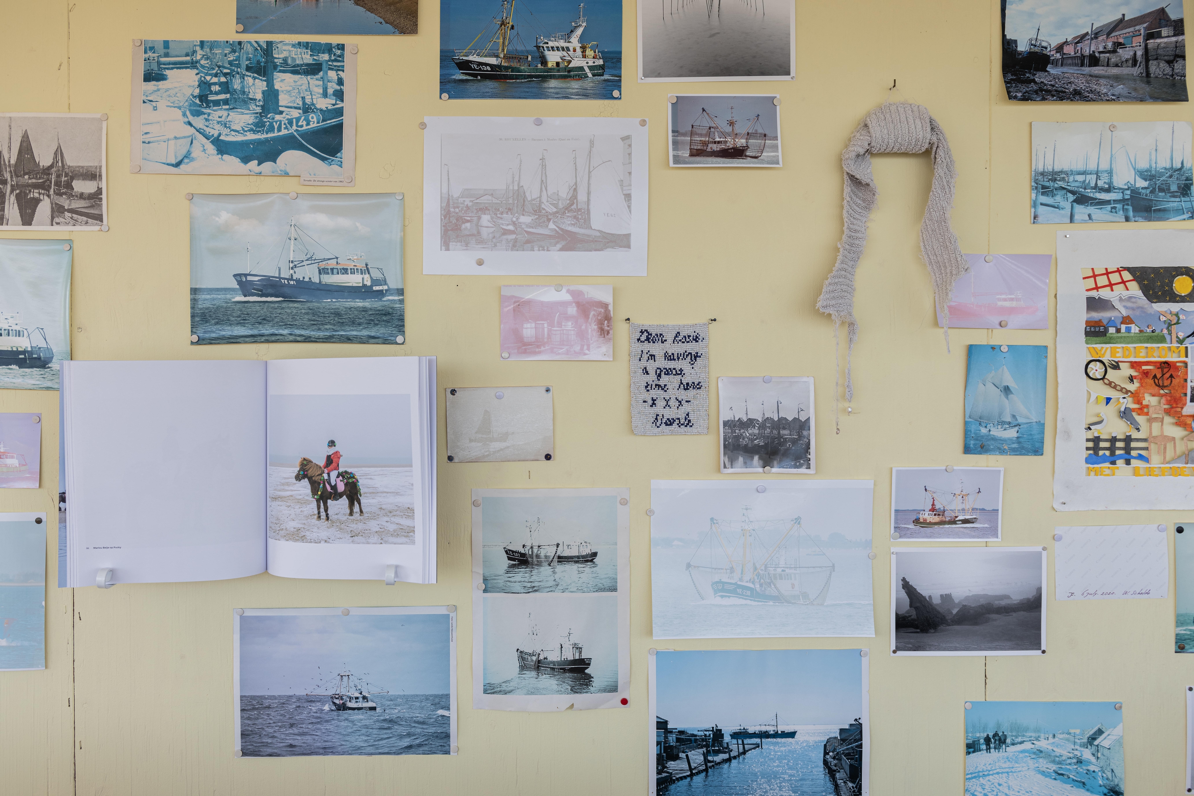 For this fourth edition of Oemoemenoe, Vleeshal invited the collective Syzygy (Brieke Drost, Mireille Tap en Veerle Melis) to create an exhibition with artists from Zeeland in a ‘praathuisje’ (translation: conversation pavillion) at the harbor in Yerseke. Syzygy invited artists Ingrid van de Linde, broeder Dieleman and Janne van Gilst and together they developed the exhibition Oval Window, which was on view in the pavilion from July 25 to September 14 2024. The artworks in this exhibition were combined with photographs of boats that are collected by the men who use the pavilion.